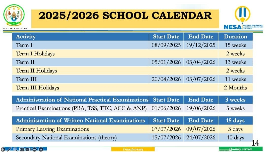 Itangazo ku ngendo z'abanyeshuri (igihembwe cya 3) n'ingengabihe y'umwaka w'amashuri 2025-2026
